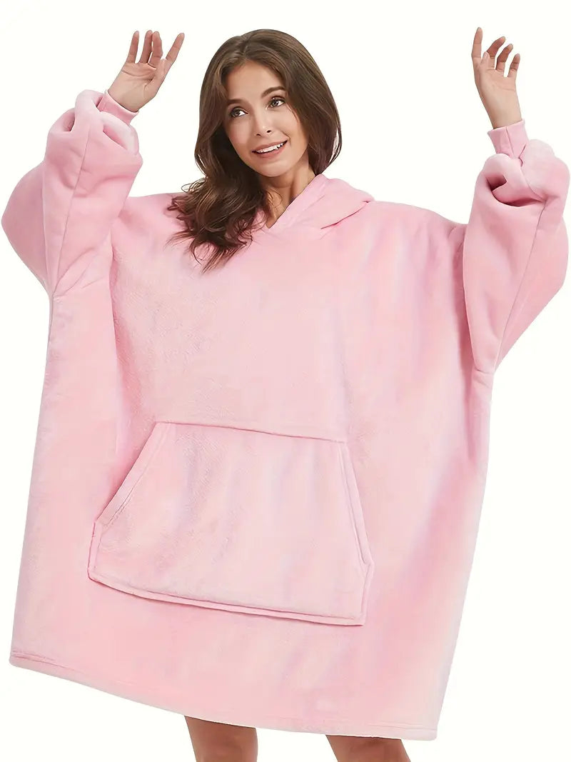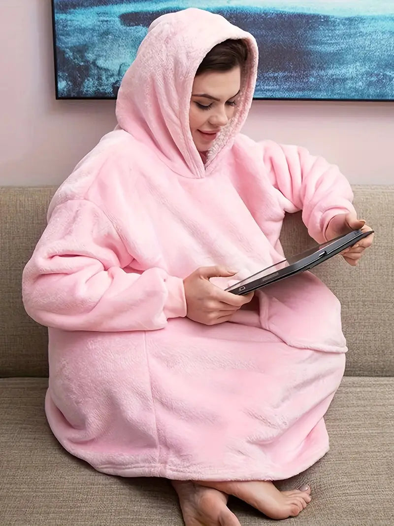 Plišani duks-ćebe sa kapuljačom i džepom. Ultra mekano, toplo i praktično, idealno za hladne dane, rad od kuće i večernje uživanje.